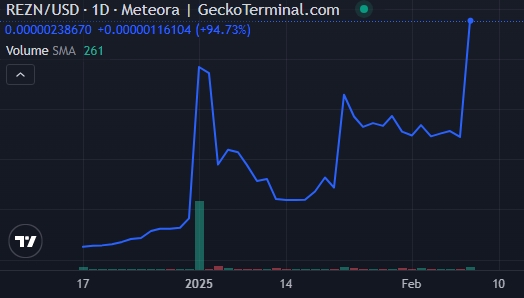 It was a huge day in trading for REZN, and with that there was a big gain in Market Cap. The February token burn goal has been achieved, and now both pools have 69% of their liquidity locked permanently on Meteora. DexScreener listing being paid soon.