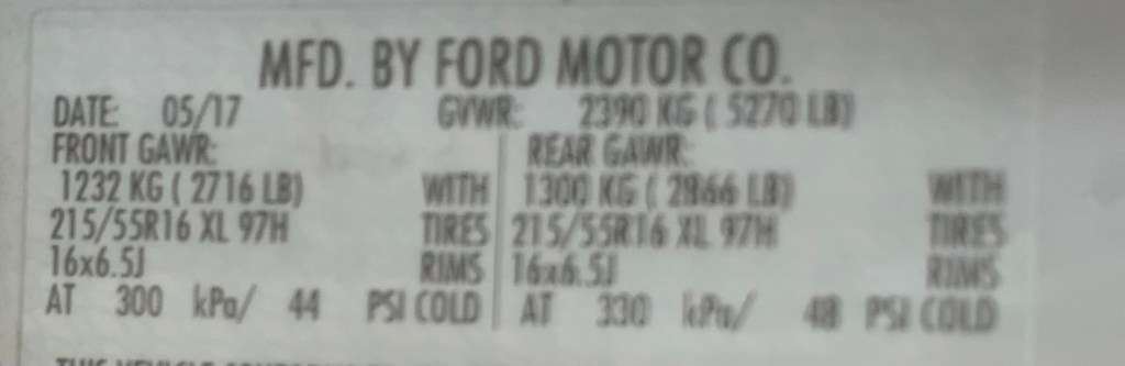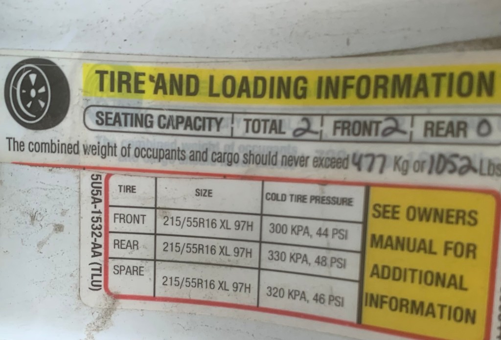 If you own one of these vans, and a tire shop tries to pull this on you, the first place to check is the sticker inside the door. If the sticker calls for XL load range, no tire shop can really argue against that. Many tire shops have argued this point, and it has cost me a lot more for tires because I didn’t just think to point to the proof right on my van.